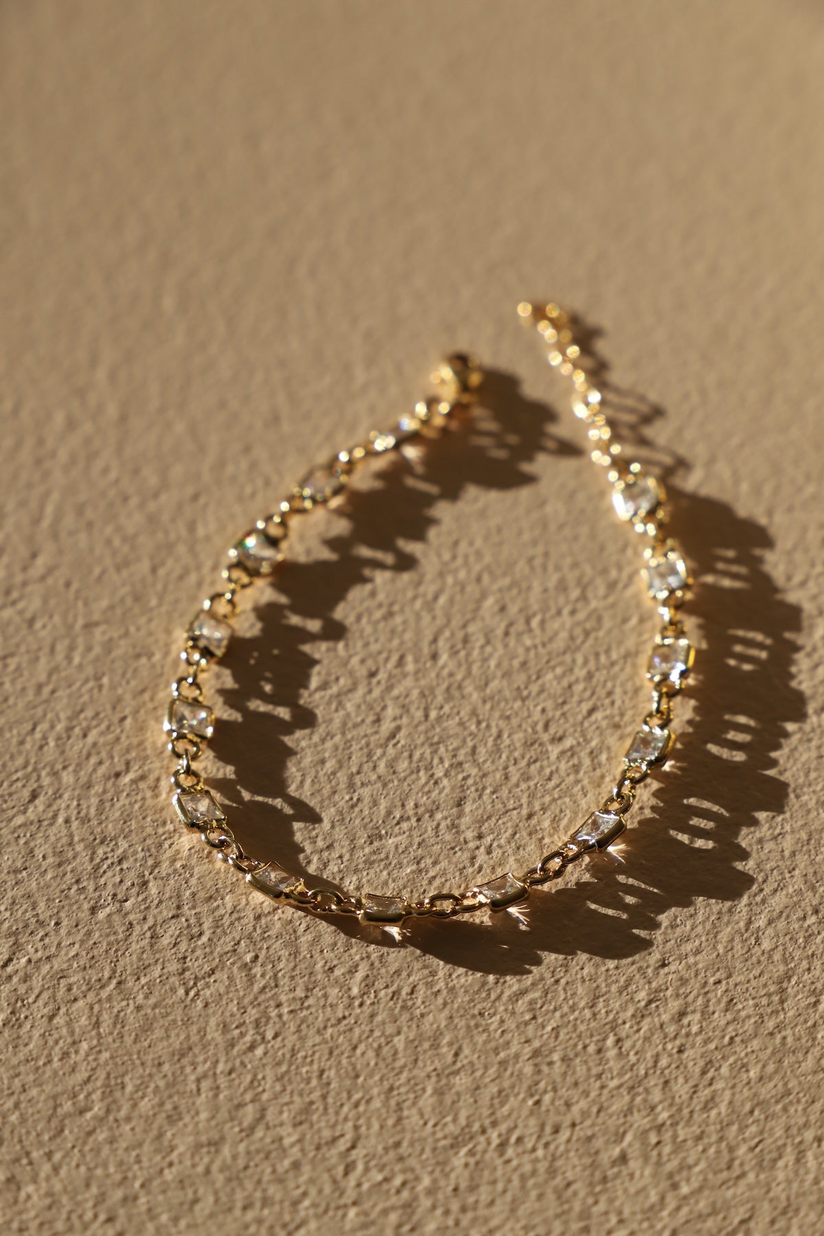 The Sloan Bezel Chain Bracelet brings a modern twist to the classic tennis look. Designed with square, bezel-framed CZ stones set in a sleek station chain, it delivers just the right amount of sparkle for everyday wear. Effortlessly chic on its own or stacked with your favorites, it’s a standout piece you’ll reach for daily.