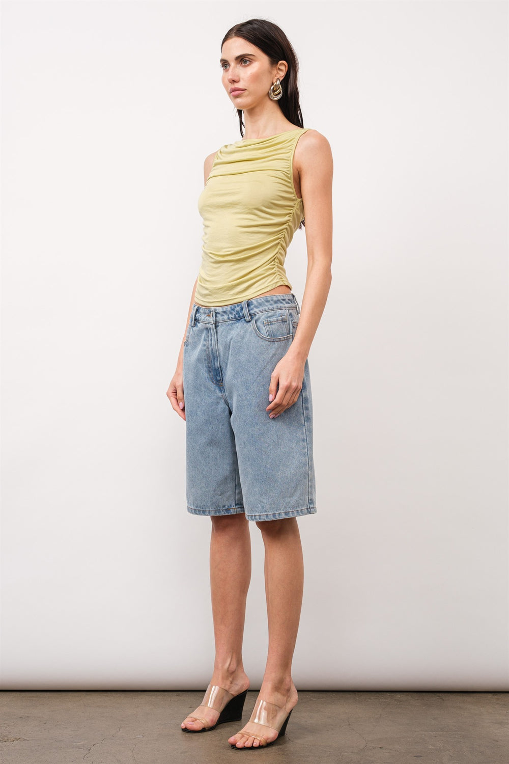 The Charlie top is meticulously designed with all-over ruching for a flattering, textured silhouette that hugs the body. Crafted from a soft stretch-jersey, this sleeveless piece features a gracefully draped neckline for a touch of effortless elegance. S: 73% Rayon, 27% Polyester