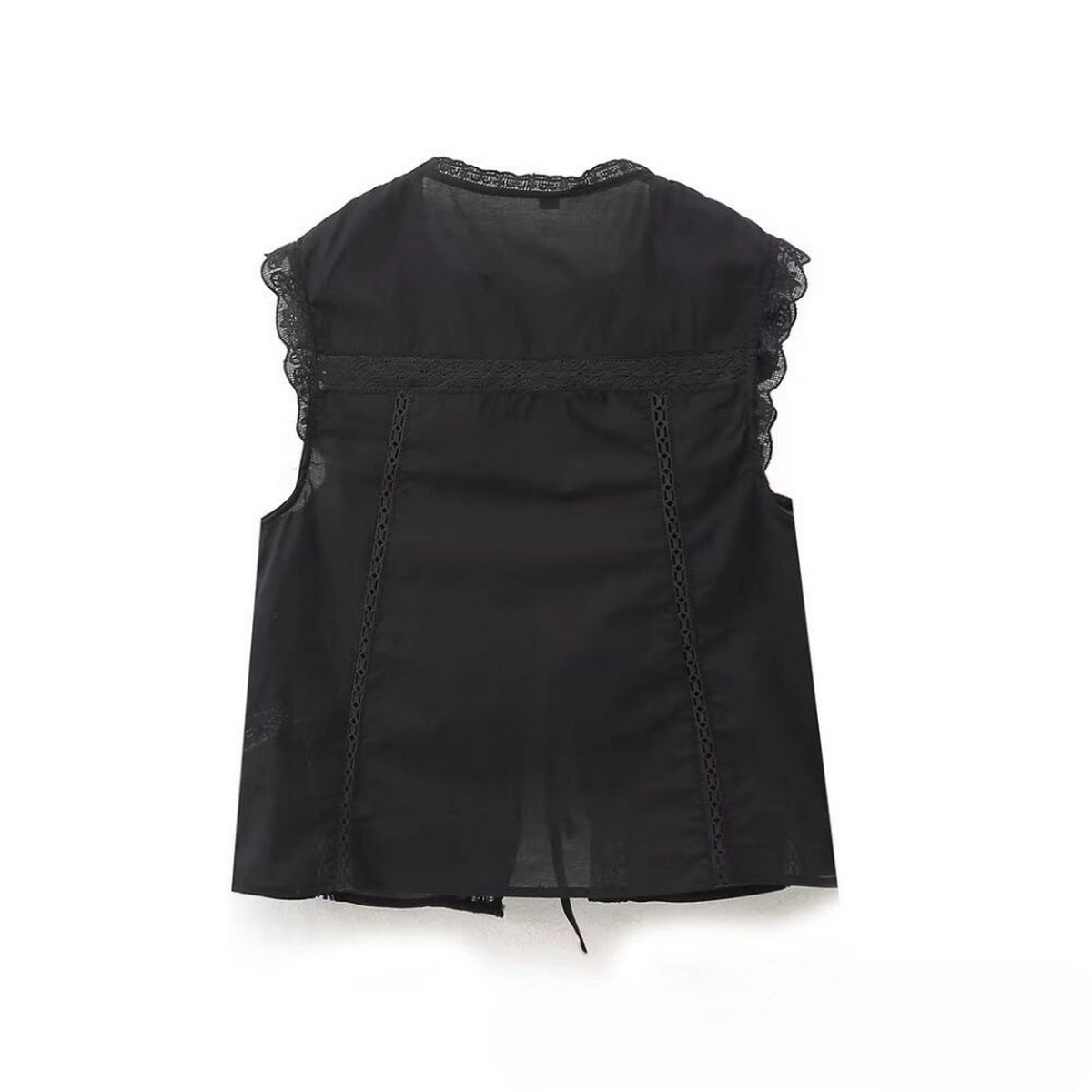 EMBROIDERED TIE VEST - BLACK