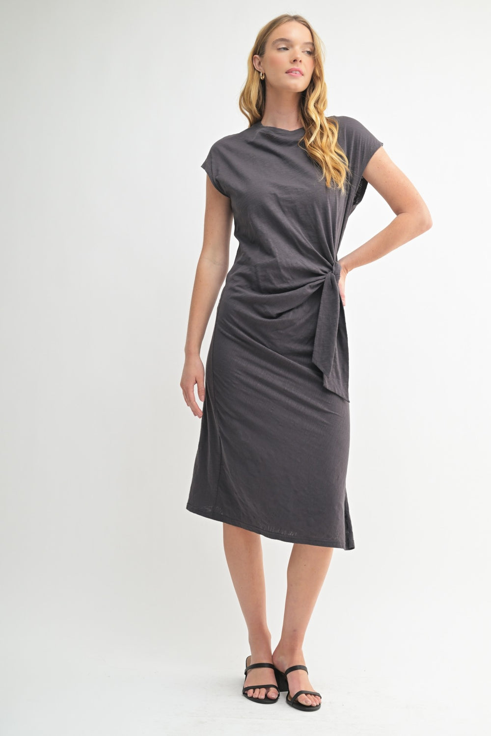 SIDE TIE KNIT MIDI DRESS