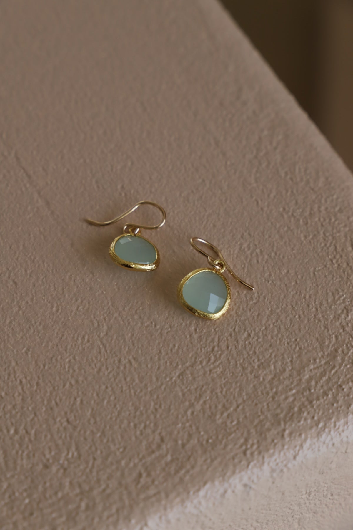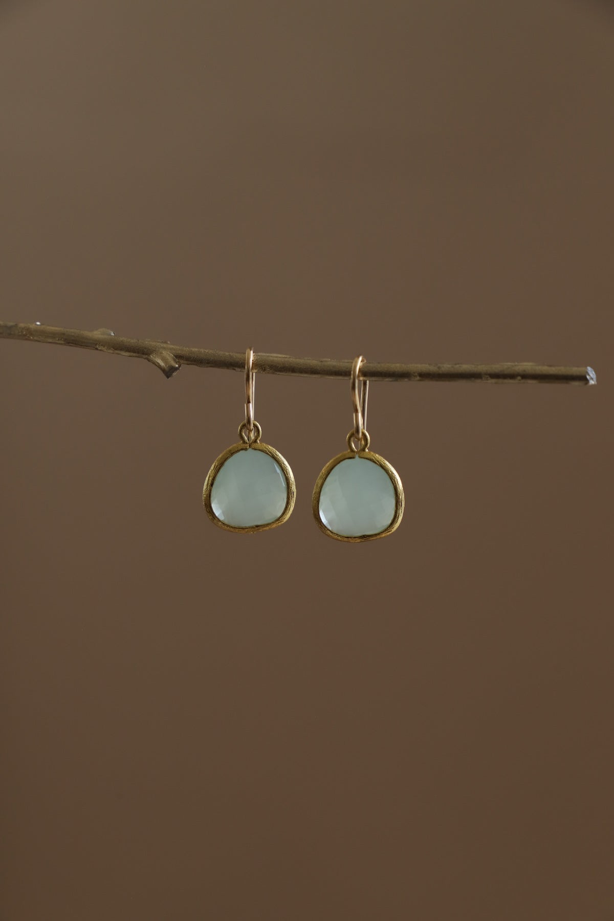 The Alice Blue Bezel Earrings feature milky aqua-blue stones framed in a sleek gold bezel, creating a dreamy wash of color that feels both fresh and timeless. Their subtle glow adds just the right hint of sophistication—perfect for everyday wear or elevating your evening look. A delicate statement you’ll reach for again and again.