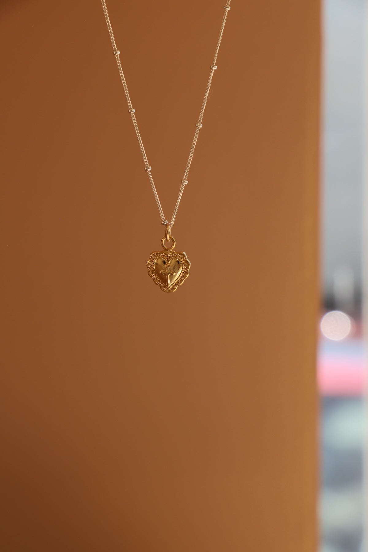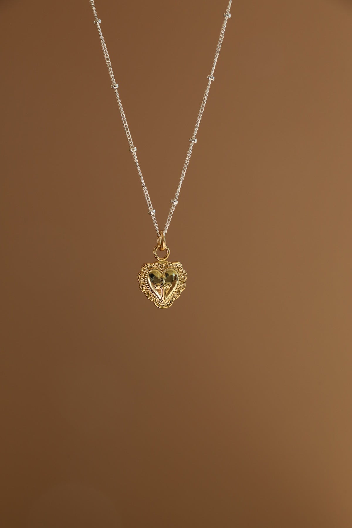A vintage-inspired piece with meaning — our Vintage Cross Heart Charm features an engraved heart design centered with a delicate cross. Crafted in gold-plated brass and sold as an individual charm, it’s a timeless symbol of faith and love that layers beautifully with your favorite chains.