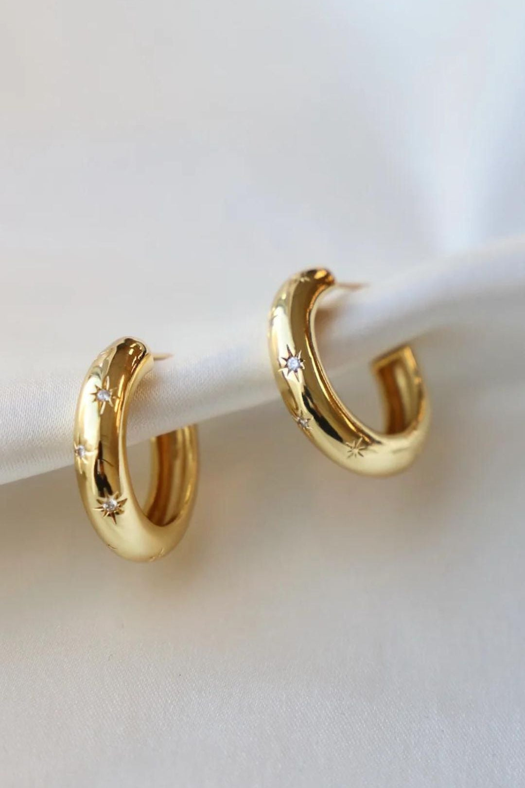A bold take on everyday shine. Our Meredith CZ Star Thick Hoops feature a chunky silver stud silhouette adorned with delicate CZ star details for the perfect touch of sparkle. Modern, eye-catching, and effortlessly cool—these are the hoops you’ll reach for to elevate any look.