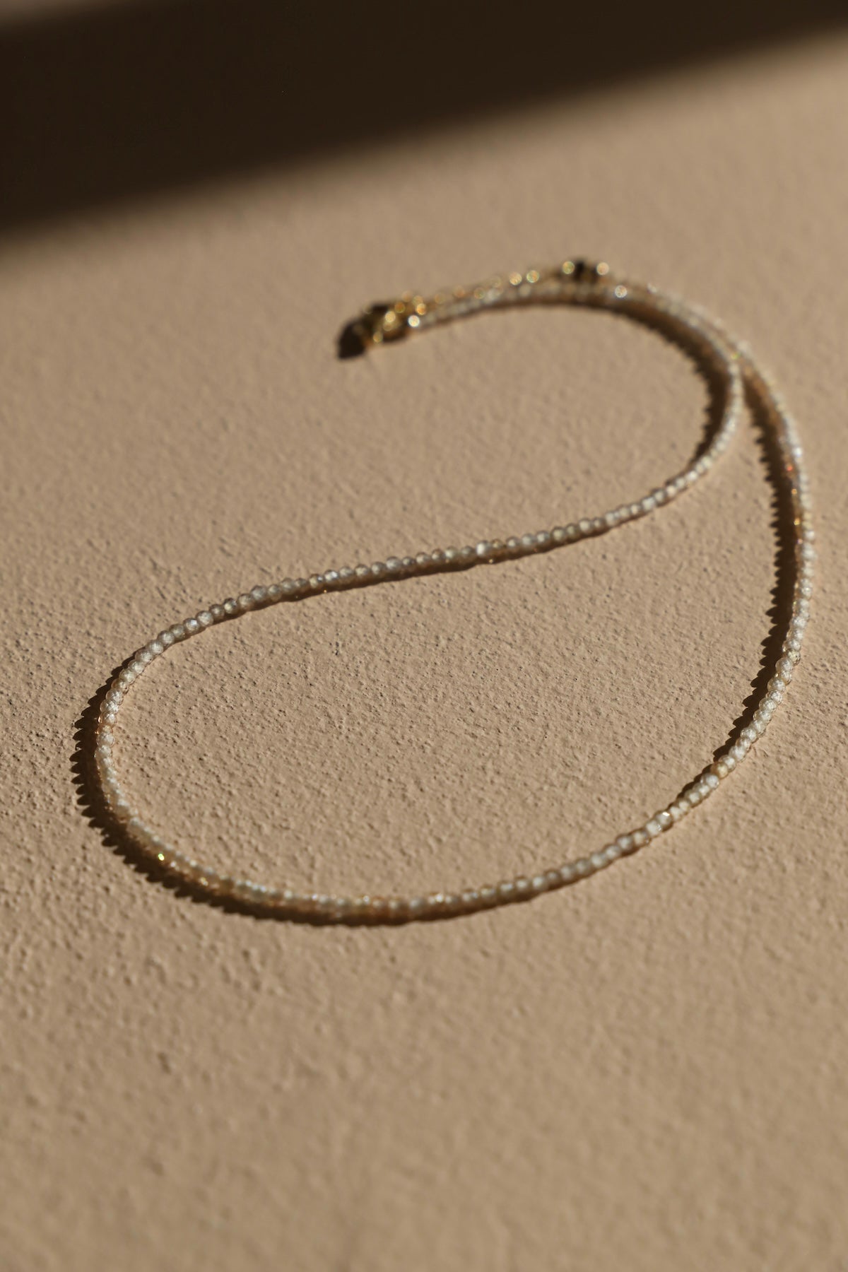 The Solstice Star Necklace features the tiniest, warm-toned sunstone beads that catch the light with the softest glow. At the center, a delicate north star silhouette pendant adds a subtle celestial touch — a symbol of guidance, intention, and shining your own way.