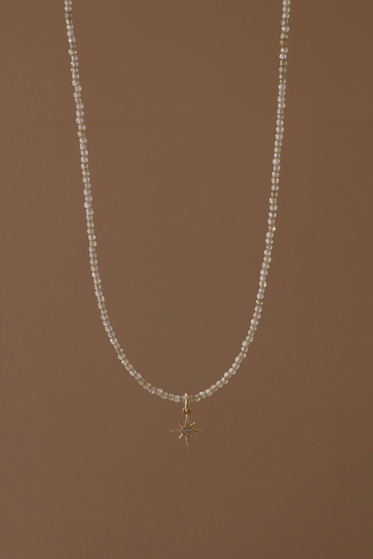 Designed with versatility in mind, the star charm is fully detachable, allowing you to wear the necklace two ways: with the star for a meaningful focal point or without for a minimal strand of luminous sunstone.