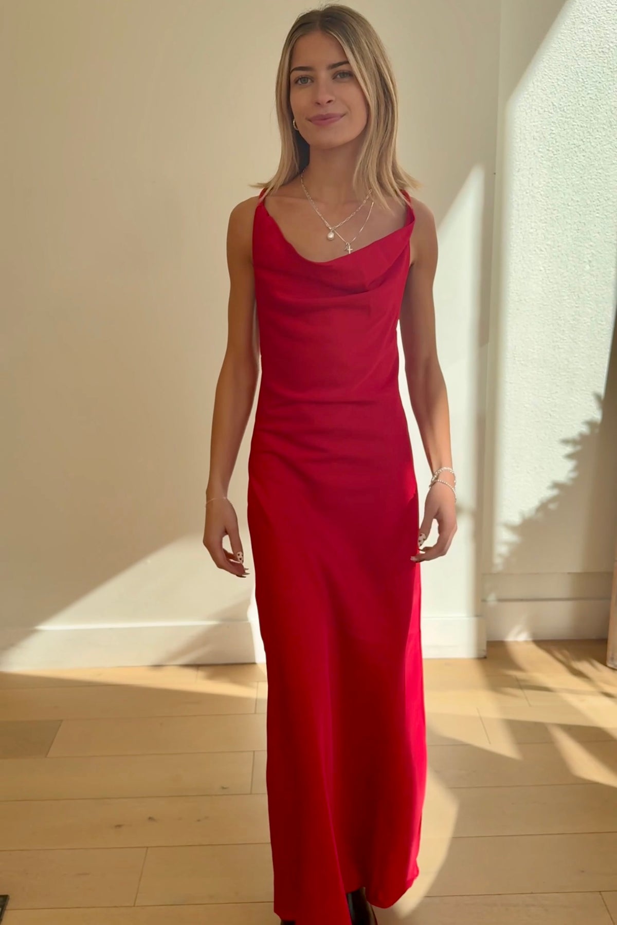 - Cowl neck - Slip on design - Round cord shoulder straps - Open back with twisted rope X straps - Cowl back detail - Self fabric lined at the bust - Unlined Shell: 100% Polyester Lining: None