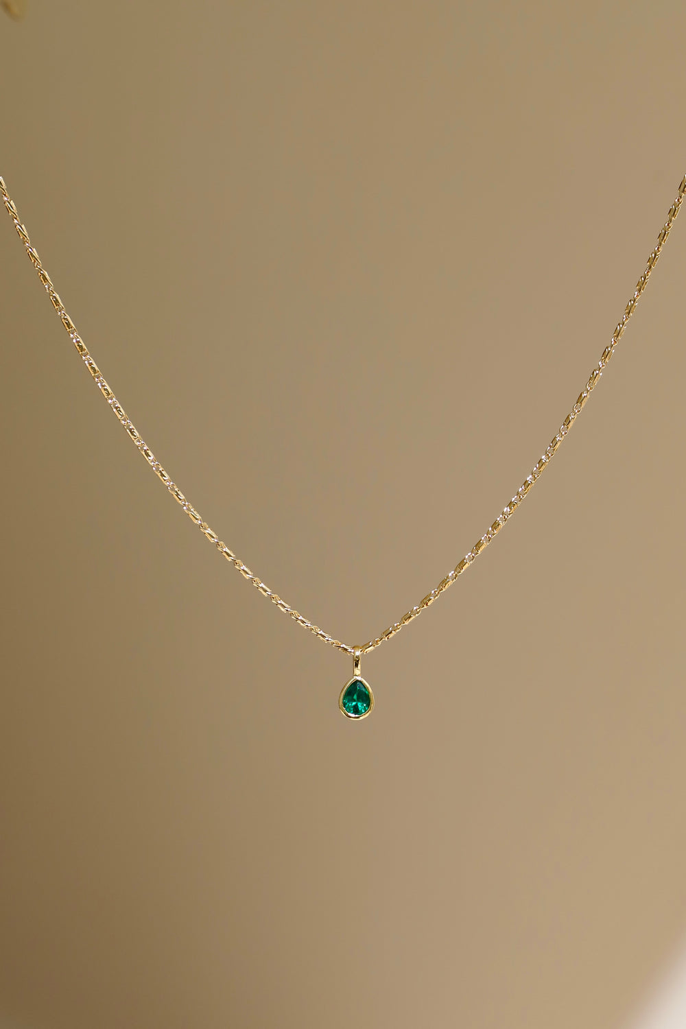 The Emerald Teardrop Bezel Necklace is the perfect personal statement piece. Featuring a striking emerald CZ, the May birthstone, this piece makes for the most thoughtful gift. The bezel teardrop charm lays beautifully on our ornate chain. Part of the May Birthstone Collection.
