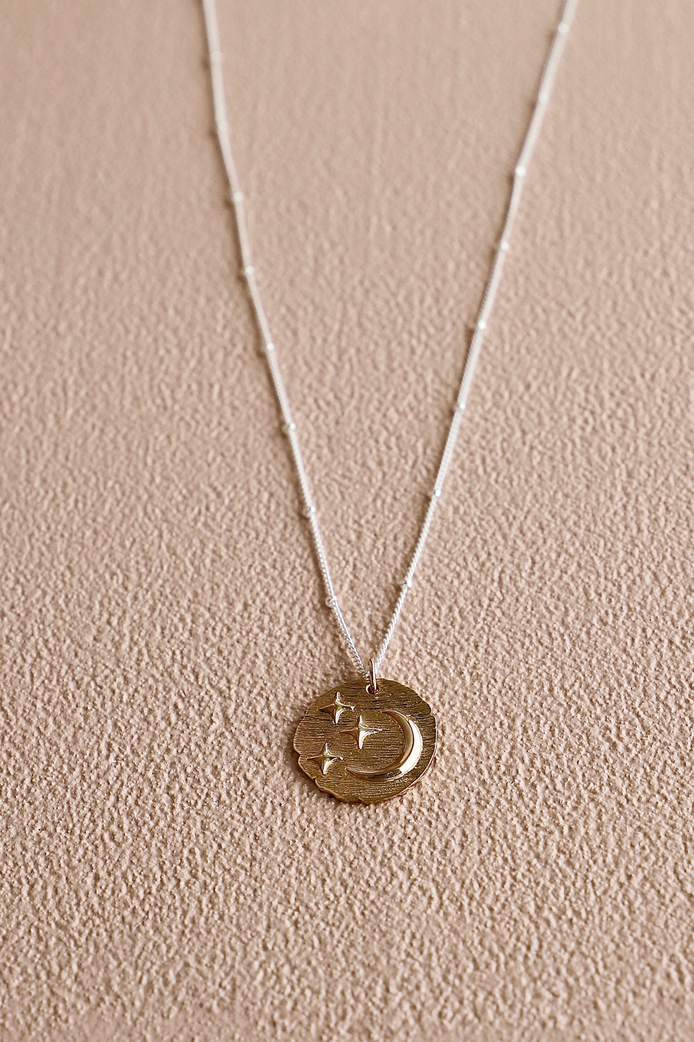 18" SILVER SATELLITE CHAIN WITH BRONZE MOON AND STAR CHARM (22X18)