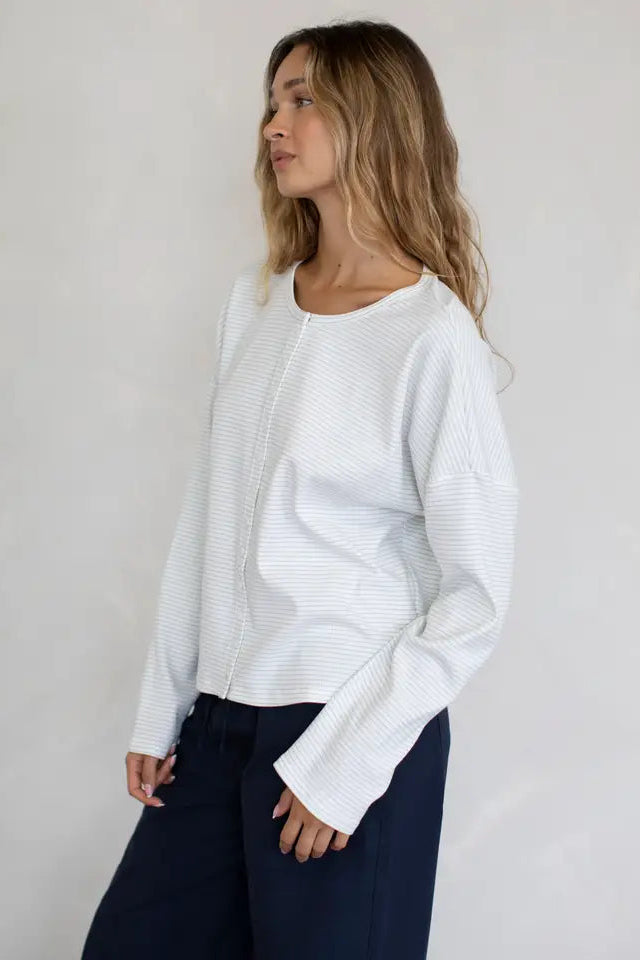 Lightweight, cotton cardigan with mini stripes.