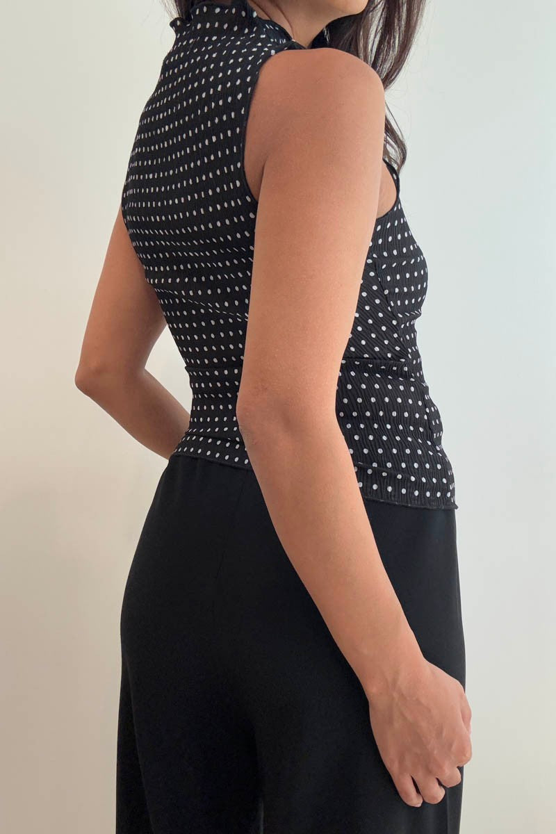 * Material: Crafted from 100% Polyester. * Features: The plisse texture adds dimension and movement, while the classic polka dot pattern brings a vintage inspired charm. The high neck design enhances your silhouette and provides a sophisticated look suitable for both casual outings and more formal occasions. * Washing Instructions: Hand wash recommended, machine wash available. Do not bleach and iron. * Model is 5'3' and Wearing a Size Small. 100% Polyester