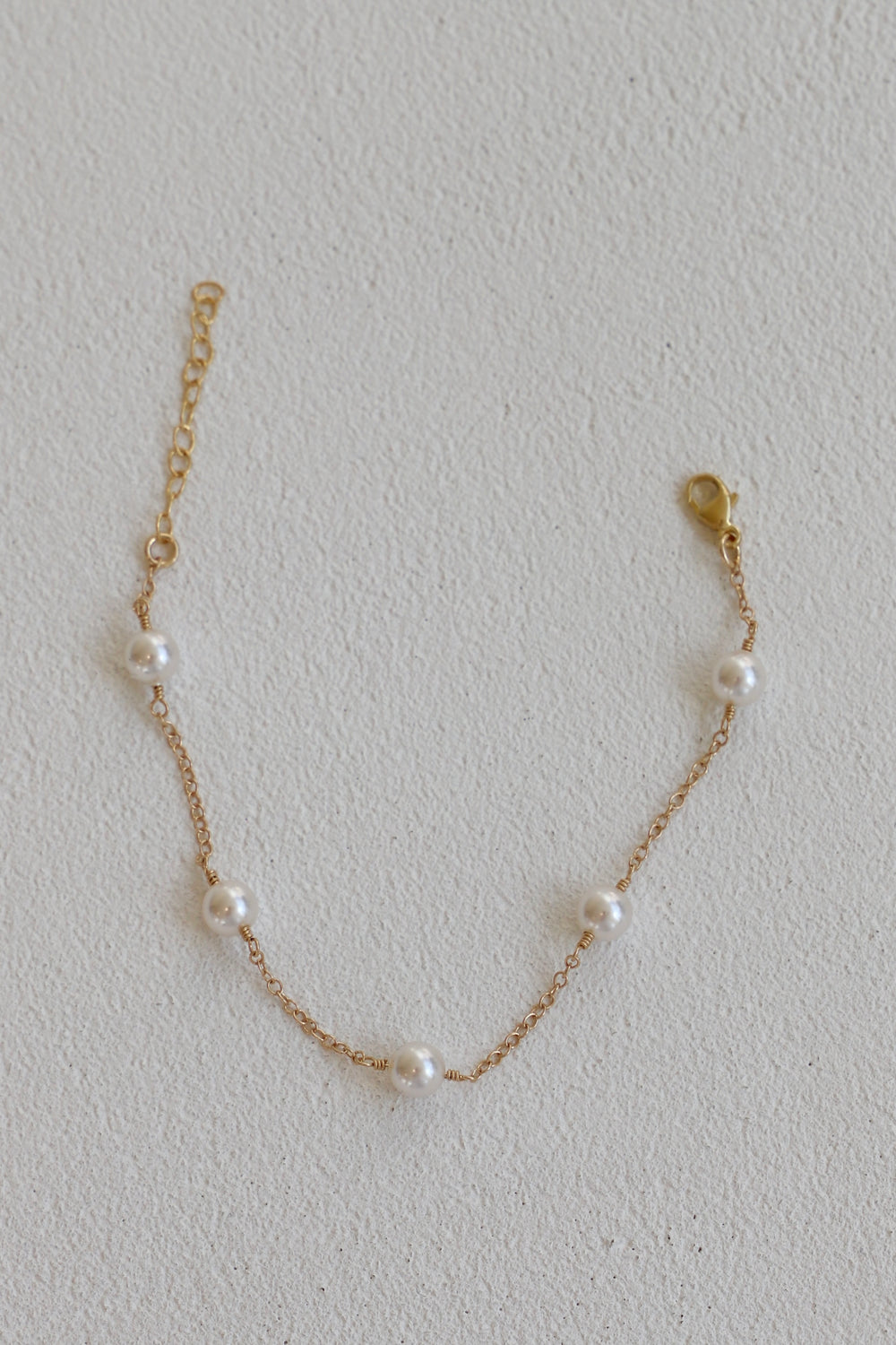 Our Pearl Station Bracelet is the perfect addition to your pearl collection. Made with gold filled cable chain and Swarovski pearls this piece is sure to bring compliments. Make a complete set with a necklace and bracelet, available in both silver and gold!