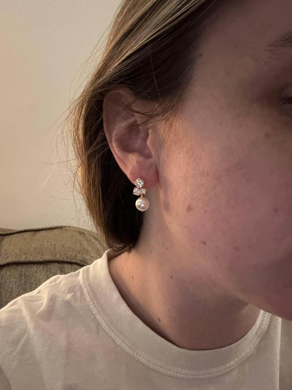 The Dahlia Studs are a beautiful addition to any bridal look or event that you may have coming up. Featuring a cubic zirconia cluster stud with a drop pearl, you can't go wrong with this elegant piece! Also available in Silver!
